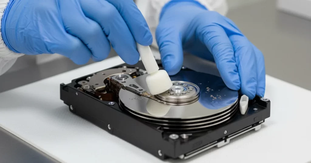 - Gehäuse selbst öffnen: Ohne Reinraum-Umgebung führt das Öffnen der Festplatte zu sofortiger Kontamination durch Staubpartikel aus der Luft.